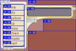 mit Image Ready Das gesamte Menue mit der Html Tabelle und den Javascript Effekten wurde mit "Image Ready" erstellt. Das Programm ist Bestandteil des Programmpakets Photoshop 5. Es ist nicht gerade die leichteste Übung, von daher sollte man schon ein bisschen Erfahrung in Photoshop mitbringen. |
